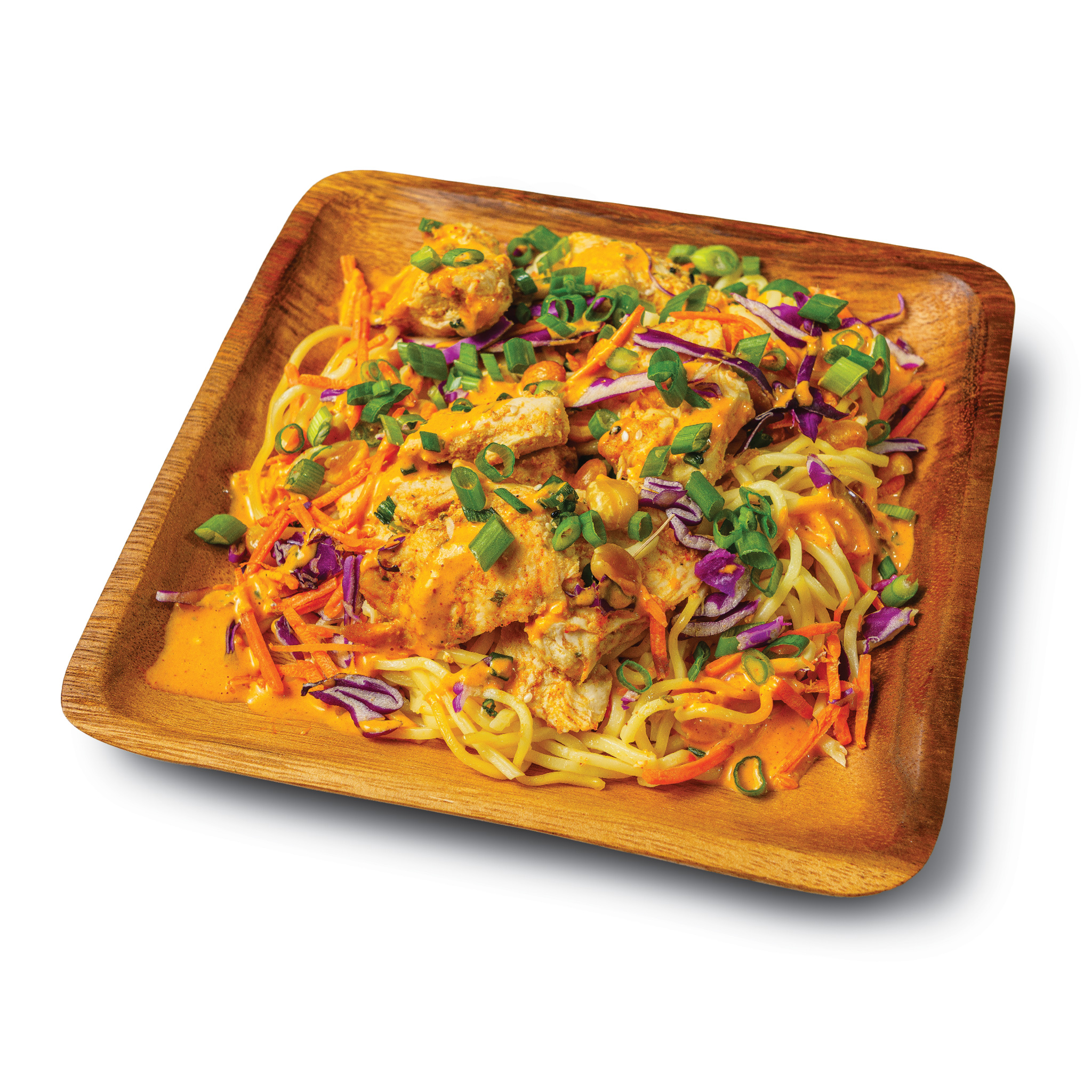 Savor the fusion of Asian-inspired flavors with this delectable Chicken Lo Mein featuring a tender chicken breast nestled on a bed of yummy noodles. Served with a delightful curry dressing bringing a twist you didn’t even know you needed!